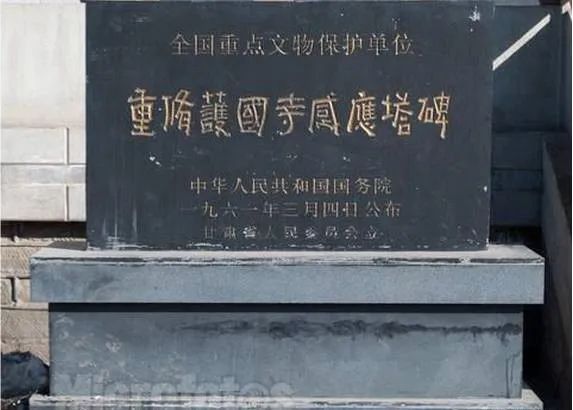 西夏碑,本名《涼州重修護(hù)國(guó)寺感通塔碑銘》,碑高26米,寬1米,厚03米。碑首呈半圓形,兩面正中用漢文和西夏文篆額,邊陰刻對(duì)稱的伎樂(lè)舞女,翩翩起舞,動(dòng)作優(yōu)美,造型準(zhǔn)確;舞女胸和手腕上有飾物,赤露上身、雙腳,下著長(zhǎng)裙,面形肌肉豐滿,吸收了敦煌飛天的藝術(shù)特點(diǎn)。碑身的兩邊呈殺角,邊上刻忍冬紋。碑一面為西夏文,共28行,滿行65字。西夏文是一種被人們遺忘了的語(yǔ)言文字,無(wú)法辨認(rèn),當(dāng)時(shí)被稱為“天書(shū)”。但碑的陽(yáng)面為漢文,共26行,滿行76字。張澍先生見(jiàn)碑陽(yáng)文末尾有“天祐民安五年歲次甲戌十五日戊建”落款,“天祐民安”為西夏年號(hào),遂判定此碑為西夏碑文,因此,人們以后稱之為西夏碑。1961年就被國(guó)務(wù)院公布列為全國(guó)第一批重點(diǎn)文物保護(hù)單位。