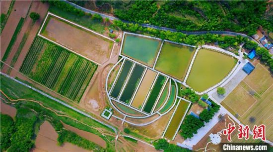 5月20日,慶陽市正寧縣永正鄉(xiāng)佛堂村永誠田園綜合體建設(shè)點,一座座涼亭、客棧相映成趣,一口口標準化魚塘碧波蕩漾,民眾在田園務(wù)工,游客在休閑垂釣,構(gòu)成了一幅清新秀麗的水上圖畫。 陳飛 攝