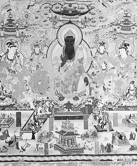 這幅壁畫是以繪畫的形式闡述了《彌勒下生經(jīng)》中所描繪的“人命將終,自然行詣冢間而死”的內(nèi)容。