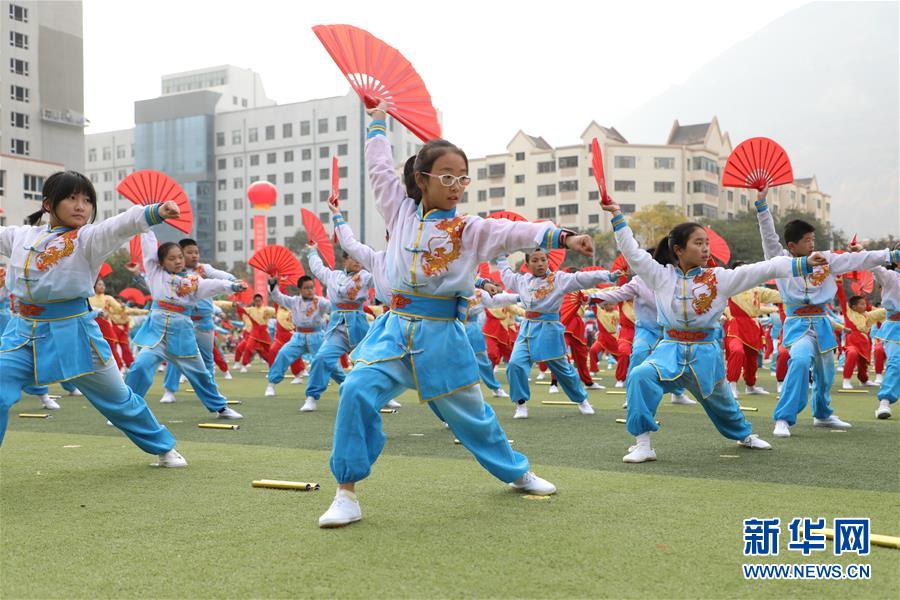 11月4日,蘭州市寧興小學(xué)學(xué)生在活動(dòng)現(xiàn)場(chǎng)表演武術(shù)操。新華社記者 張智敏 攝