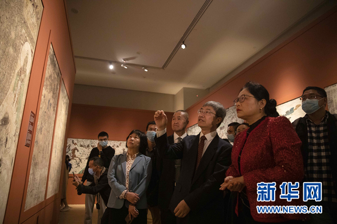 在海南省博物館,敦煌研究院院長趙聲良講解展覽。新華網(wǎng)發(fā)(王嘉奇 攝)
