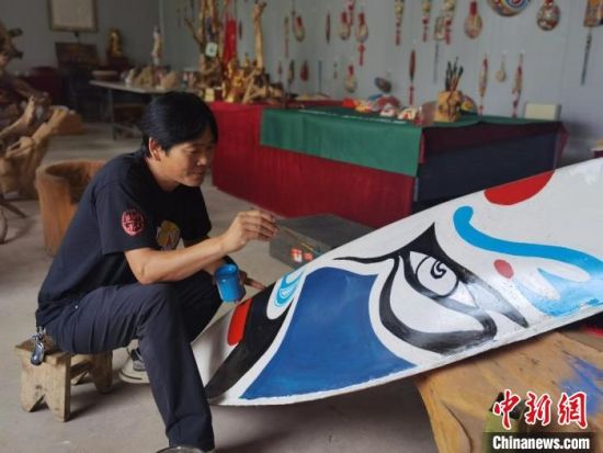 取材、挖空、刨光、勾線、著色……經(jīng)過這些步驟,一個馬勺臉譜就完成了。馬勺臉譜由中國民間社火臉譜演化而來,已有數(shù)千年歷史,系列產(chǎn)品主要包括馬勺臉譜、梭子臉譜、鏟子臉譜、木锨臉譜等。9月初,甘肅省隴南市徽縣馬勺臉譜的省級傳承人馬龍,依舊在工作室創(chuàng)作。今年47歲的他,堅(jiān)守馬勺臉譜的制作技藝已有20余載,不僅傳承了社火臉譜和京劇臉譜的古韻,而且創(chuàng)新了貼金、刻繪等技藝,在傳統(tǒng)中融入了現(xiàn)代造型和色彩元素。它的作品在網(wǎng)絡(luò)引起熱議:“臉譜畫在梭子上,厲害了。”“寶藏非遺,期待下次打卡。”