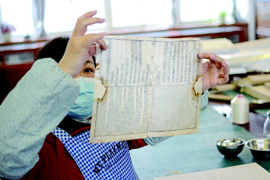 1月5日,記者來到市圖書館古籍部,工作人員正在對破損古籍進行全手工修復。