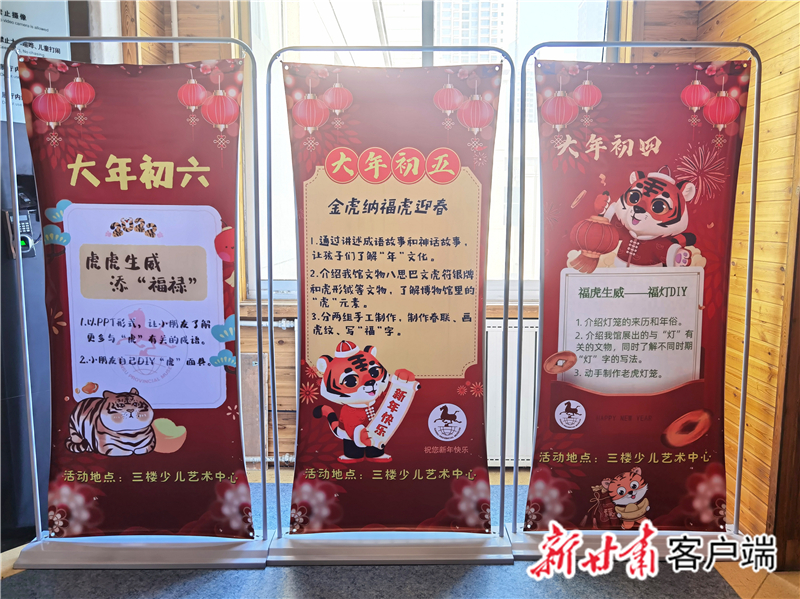 “后續(xù),還有大年初三的‘靈虎送福——虎紙漿畫DIY ’活動(dòng)、大年初四的‘福虎生威——福燈DIY ’活動(dòng)、大年初五的‘金虎納福虎迎春’活動(dòng)、大年初六的‘虎虎生威添‘福祿’活動(dòng)’。”省博物館社會(huì)教育部主任盧冬介紹,每場(chǎng)活動(dòng)面向約30名小朋友開展,經(jīng)過前期策劃準(zhǔn)備,除了省博物館社教部的10余名工作人員,給孩子們普及有關(guān)虎和北京冬奧會(huì)的知識(shí),還有來自西北師范大學(xué)、蘭州二十七中等校的學(xué)生志愿者,指導(dǎo)輔助孩子們玩游戲、做手工。