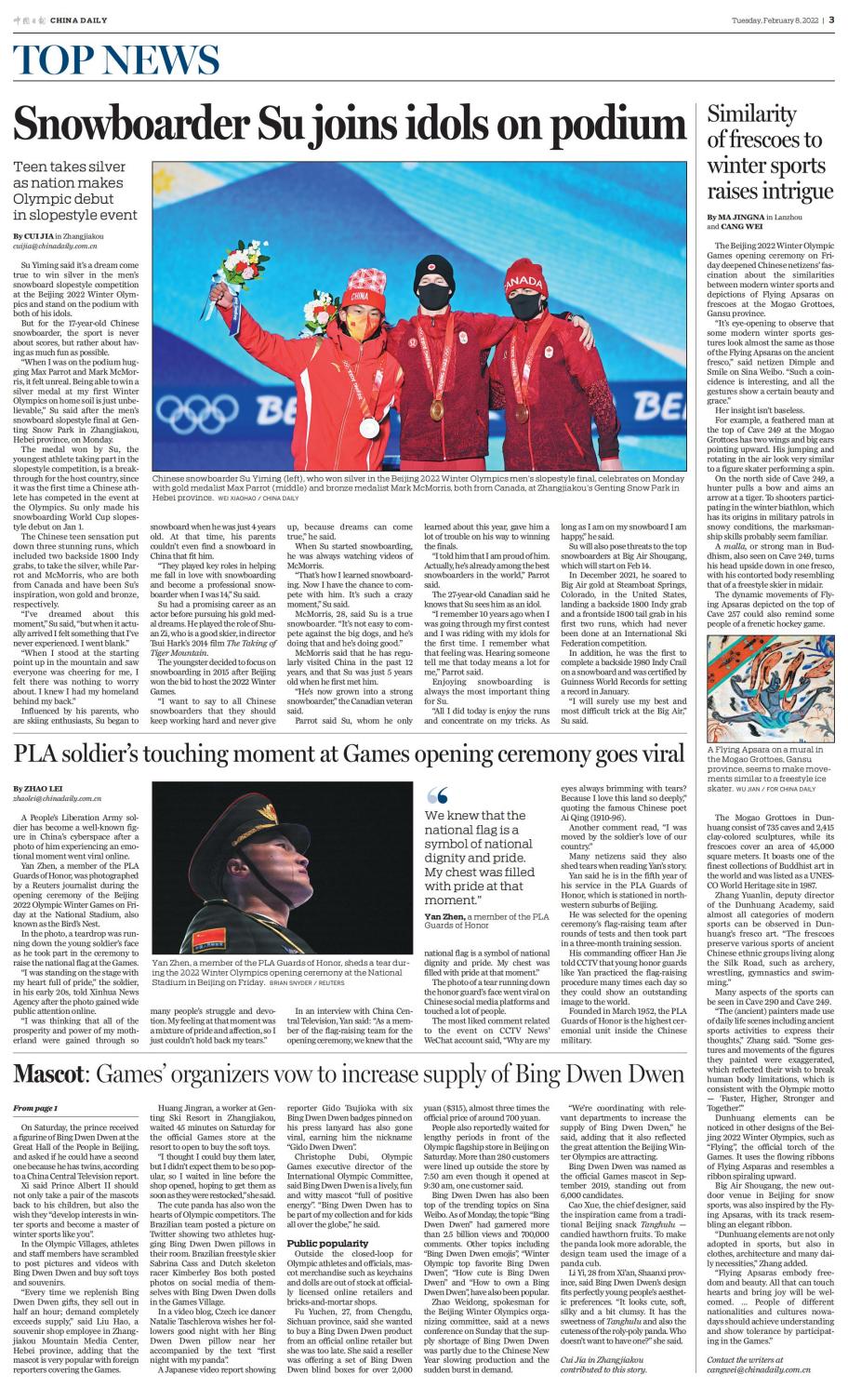 《中國日?qǐng)?bào)》2月8日三版,對(duì)敦煌莫高窟壁畫與冬季運(yùn)動(dòng)的相似性進(jìn)行了報(bào)道。