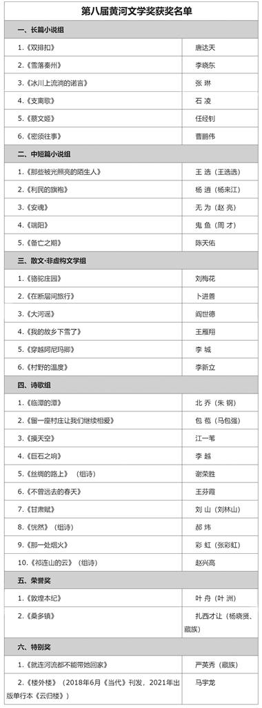 原標題:第八屆黃河文學(xué)獎 獲獎名單公示