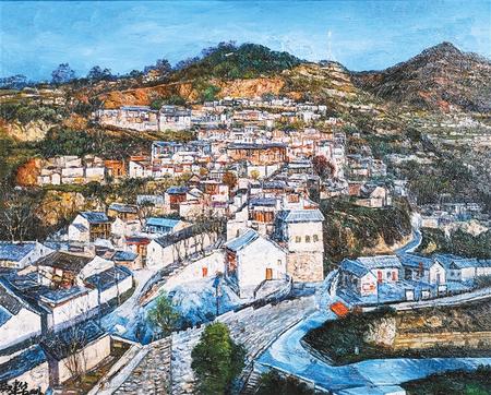 魚龍寧家山村(油畫) 馮建華