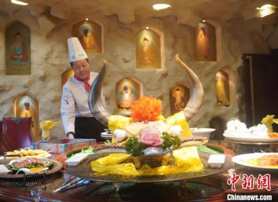 中新網(wǎng)蘭州3月29日電(張婧)“來自壁畫中的敦煌菜,背后都藏著真實(shí)存在的人或事、景或點(diǎn)。”國(guó)家特一級(jí)烹調(diào)師趙長(zhǎng)安長(zhǎng)期從事于敦煌菜的歸納與發(fā)展。他說,無(wú)論菜名還是菜式的賣相,都融入敦煌故事或圣境圣水,可謂“一菜一典故,一席十圣境”,讓人仿佛置身于古絲綢之路上。