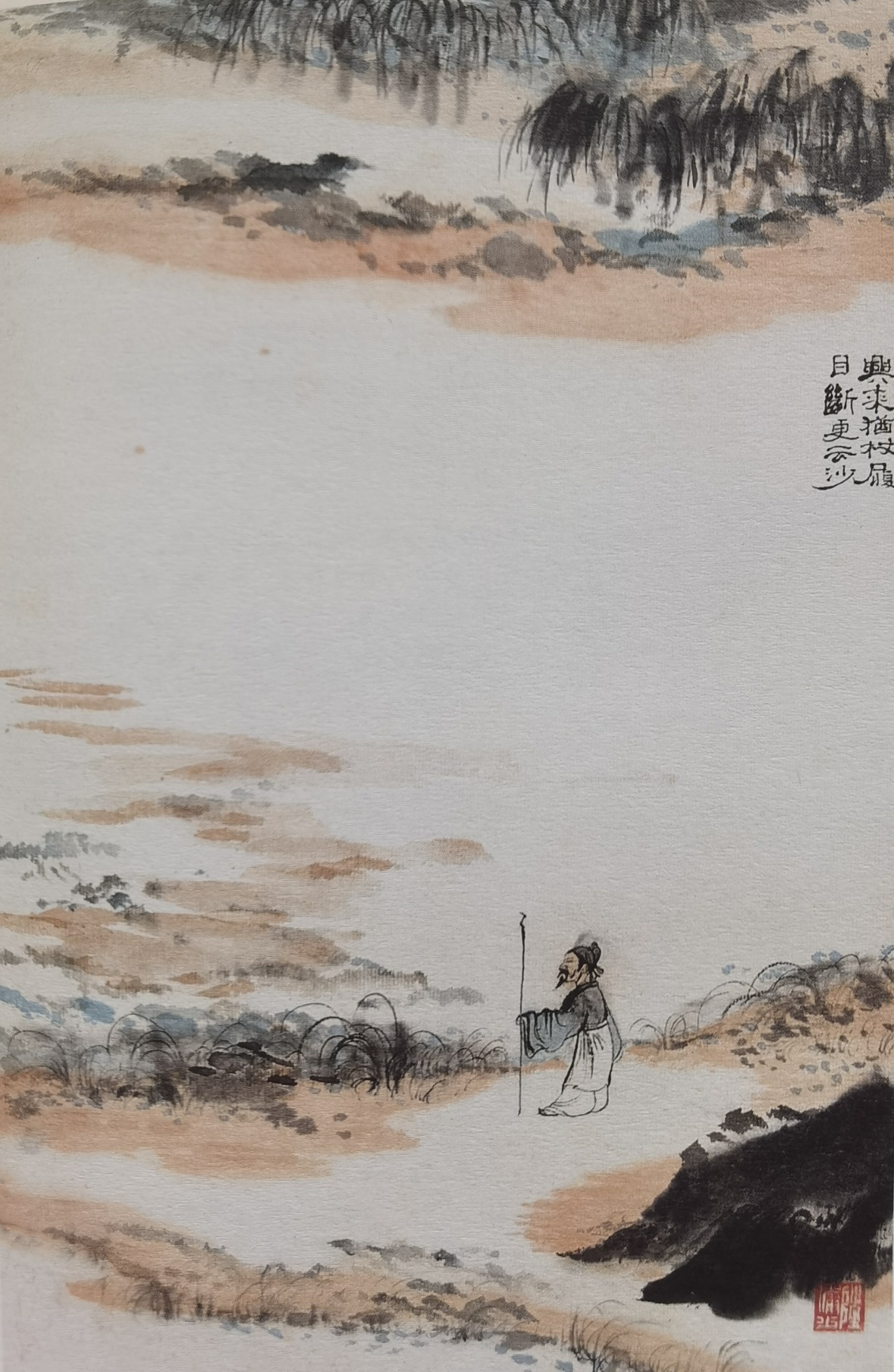 圖:陸儼少《杜甫詩意圖冊》之《漾舟千山內(nèi),日入泊枉渚》