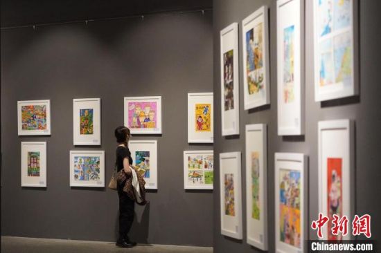 5月15日,甘肅蘭州,市民參觀少兒美術(shù)展覽。