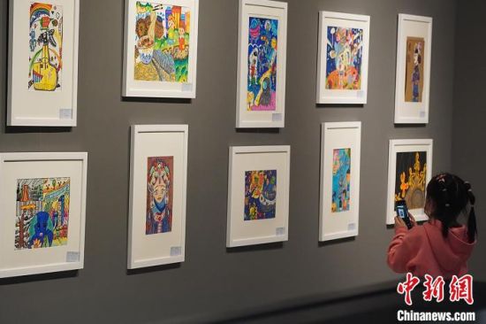 5月15日,甘肅蘭州,市民參觀少兒美術(shù)展覽。當(dāng)日,不少市民和游客來(lái)到甘肅省博物館參觀,樂享周末時(shí)光。九美旦增 攝