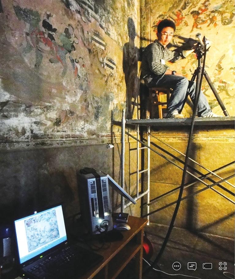 莫高窟第148窟壁畫數(shù)字化采集現(xiàn)場。