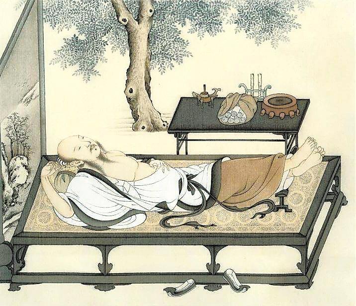 唐代的虢國(guó)夫人的“夜明枕”更為稀奇。五代王仁裕在《開元天寶遺事》中有記載:“夜明枕”,其實(shí)是一種玉石枕頭:“虢國(guó)夫人有夜明枕,設(shè)于堂中,光照一室,不假燈燭。”此外,“石膏枕”也是古人的消暑佳物,除了降溫納涼,還有解暑安神的保健功能。唐代詩(shī)人薛逢寫《石膏枕》贊頌這種神器:“表里通明不假雕,冷于春雪白于瑤。朝來送在涼床上,只怕風(fēng)吹日炙銷。”