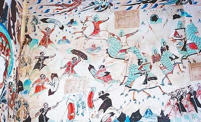 有些武器、軍需品的制作,技術(shù)含量很高。《十六國(guó)春秋·西涼錄》記載:建初二年(公元406年),西涼主李暠“造珠碧刀二口,銘其背曰‘百勝’,隸書(shū)。”珠碧,意為珠寶。這是在刀柄上鑲嵌珠寶,在刀背上用隸體鏤刻“百勝”二字的兩把刀,寓意百戰(zhàn)百勝。雖然記載未講刀的鋒利程度,但僅從其裝飾來(lái)看,殊非一般技術(shù)所能勝任。敦煌莫高窟第285窟南壁西魏壁畫(huà)《五百?gòu)?qiáng)盜成佛因緣》中,有戟式雙刃陌刀、長(zhǎng)矛、環(huán)首刀、弓箭及盾的圖像,應(yīng)當(dāng)是現(xiàn)實(shí)社會(huì)所用武器的形象反映,有很高的技術(shù)研究?jī)r(jià)值。
