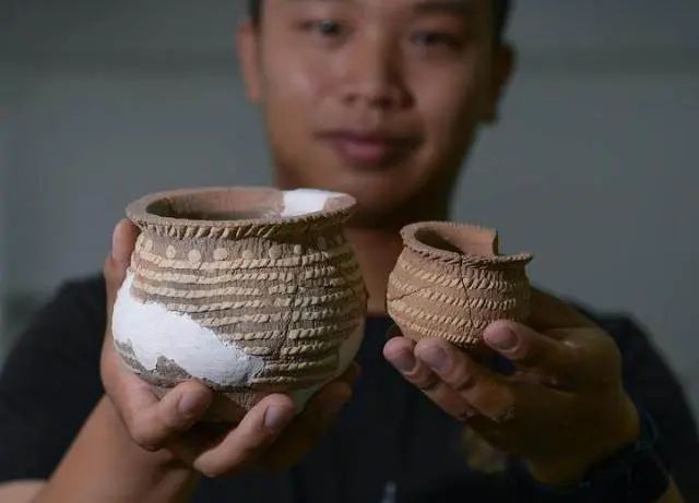文物工作者對南佐遺址內(nèi)出土的陶器進行修復(fù)(8月25日攝)。新華社記者 李賀 攝