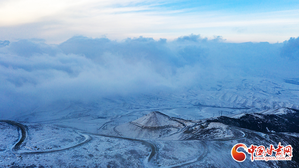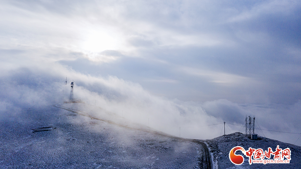 近日,一場降雪過后,武威市天祝縣烏鞘嶺出現(xiàn)云海景觀。從海拔3562米的毛毛山俯瞰,大地銀裝素裹,雪山巍峨,云海起伏,云霧沿著山脊緩緩流動,好似潔白的綢緞,美如仙境。