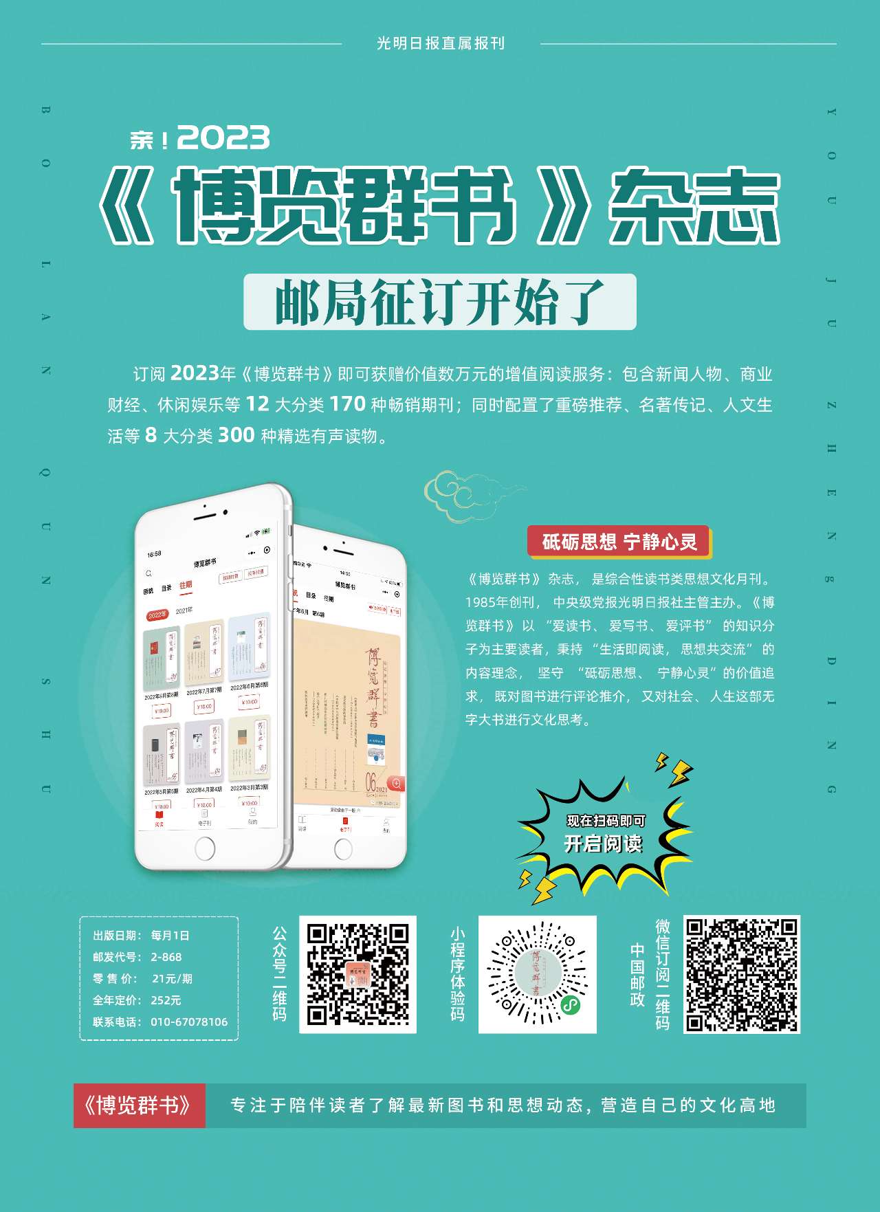 (由北京市報刊發(fā)行局青年團隊設(shè)計的《博覽群書》2023年征訂廣告,點擊最后一個二維碼即可完成訂閱)