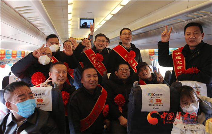 首趟列車上還特別安排了銀蘭高鐵中蘭段的建設(shè)者乘坐,4年多來,建設(shè)者夙夜在公,砥礪前行,用智慧和汗水讓藍(lán)圖成為現(xiàn)實,在這個特殊的日子他們格外開心。