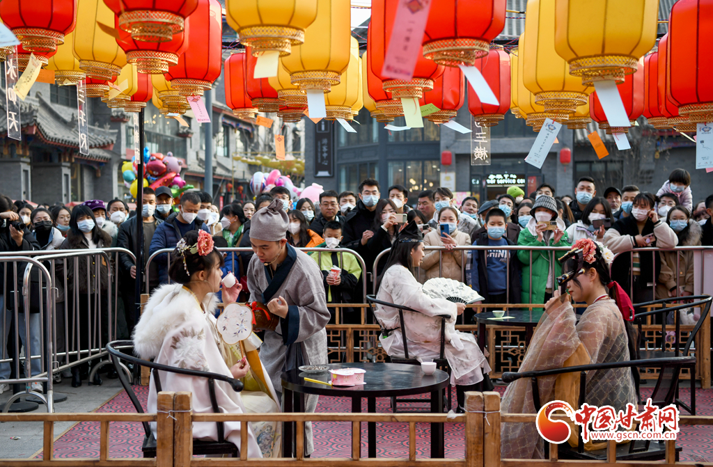 2月5日,甘肅省蘭州市七里河區(qū)蘭州老街,游人如織,格外熱鬧,人們賞舞獅、看表演 、猜燈謎、品美食,處處洋溢著熱騰騰的“煙火氣”。春節(jié)期間,蘭州老街開啟多場景布局、多業(yè)態(tài)融合、沉浸式消費等新春購物盛宴,吸引大量市民游客前來消費游玩,消費旺文旅熱,老街成為城市商業(yè)、文化和旅游的地標(biāo)。