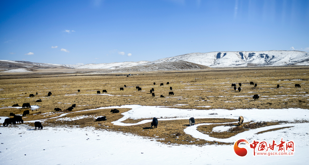 3月8日,甘肅省甘南藏族自治州碌曲縣境內(nèi)再次出現(xiàn)降雪天氣,雪后初霽,大地銀裝素裹,山間云霧繚繞,牛羊成群結(jié)隊(duì)在雪原中奔跑、覓食,構(gòu)成一幅和諧的生態(tài)畫卷。