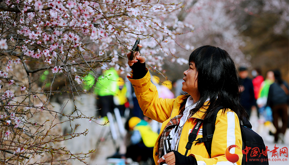 平?jīng)鍪嗅轻忌骄皡^(qū)的桃花競(jìng)相綻放