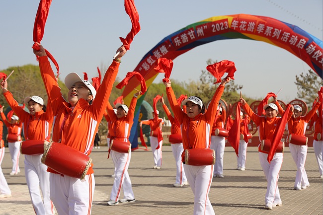 人民網(wǎng)蘭州4月9日電 (記者高翔)4月8日,“彩虹張掖·樂游甘州”2023花游季系列活動(dòng)啟動(dòng)儀式在甘肅省張掖市潤泉湖公園舉行。