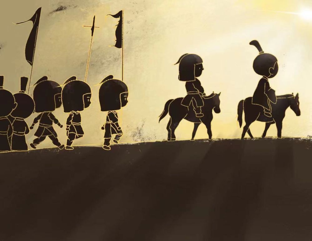 天亮后,長(zhǎng)羅侯帶著休整完畢的車(chē)馬隊(duì)啟程