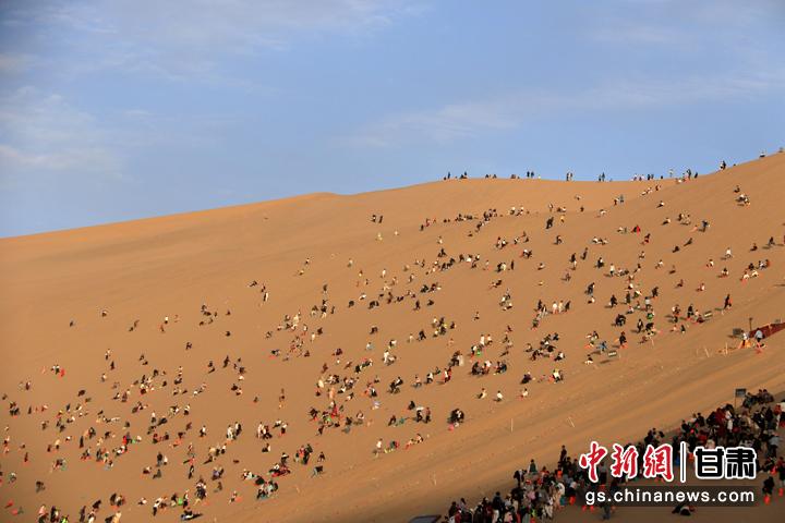 今年以來,甘肅省敦煌市旅游市場持續(xù)火熱。當?shù)刂包c鳴沙山月牙泉在今年中秋國慶假期期間,累計接待游客首次突破300萬人次,比2019年同期增長35.5%,創(chuàng)歷史新高。(張曉亮 習剛)