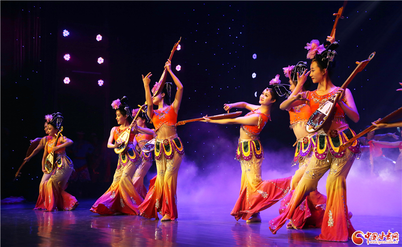 除了甘肅省民族歌舞團和西北民族大學舞蹈學院聯(lián)袂獻上的精彩節(jié)目外,當晚,肅州區(qū)文化館還為觀眾奉獻了舞蹈《西域羯鼓》。據(jù)悉,羯鼓源自西域,狀似小鼓,兩面蒙皮,均可擊打,既能表現(xiàn)快速緊急或激烈的情緒,又可以用散淡悠長來營造靜謚雅致的氛圍。表演中,舞者著霓裳,帶搖冠、掛嚶珞,貼著金花的衣裙飄曳、巾帶飛舞,四周天花飛落,如夢如幻。該節(jié)目通過歡快的音樂、輕快的舞步、流暢的隊形變換等形式,展現(xiàn)了極具特色民族舞蹈風格,也反映了隴原兒女團結(jié)奮進、昂揚向上的精神面貌。