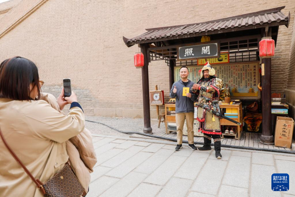 光頭絡腮胡的李森身披甲胄,在景區(qū)內扮演明朝嘉峪關最高軍事長官,為游客簽發(fā)文創(chuàng)產品“關照”(通關文牒)。自2001年起,他在嘉峪關“守關”20多年,親眼見證了嘉峪關旅游業(yè)的發(fā)展變化。