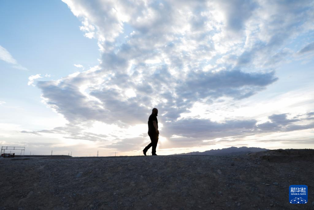 7月14日,結束一天的工作,李森走出甘肅嘉峪關關城景區(qū)。新華社記者 陳鐘昊 攝