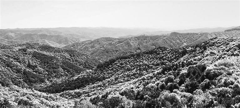 離開黃帝陵園,沿省道繼續(xù)行進,逐漸進入了高原林海。四面山川勾連,丘谷交織,全被森林覆蓋。無數(shù)高峻的山嶺如群龍盤繞,道道山脊線條分明,錯落有致,茂密的林木在冬寒中襯成一派青藍底色,常綠的松柏又在林海中開拓出成片蒼翠。極目遠望,在正午的陽光照耀下,林海風(fēng)煙彌漫,顯出一種天地間的浩然之氣。