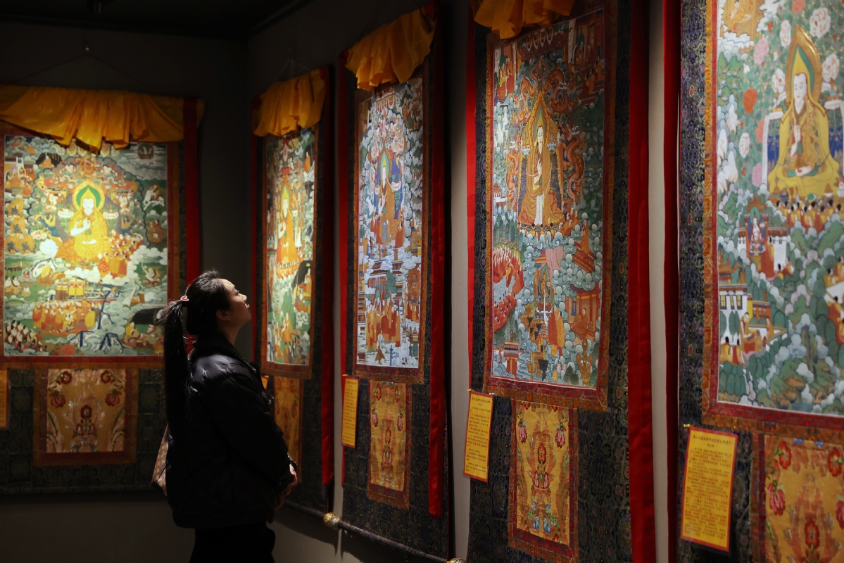 12月26日,北京,觀眾在皇城藝術館參觀《甘肅甘南非遺文化藝術展》。中國日報記者 姜東 攝