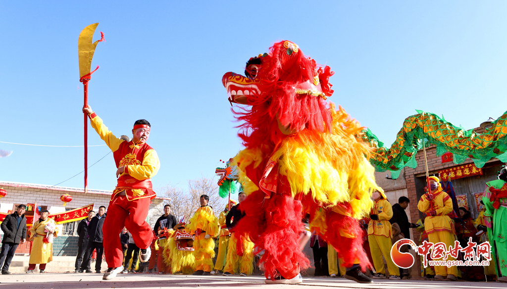 甘州區(qū)烏江鎮(zhèn)平原村“萬家和美”社火隊(duì)隊(duì)員們走街串巷到村民家中拜大年。 通訊員 王將 攝