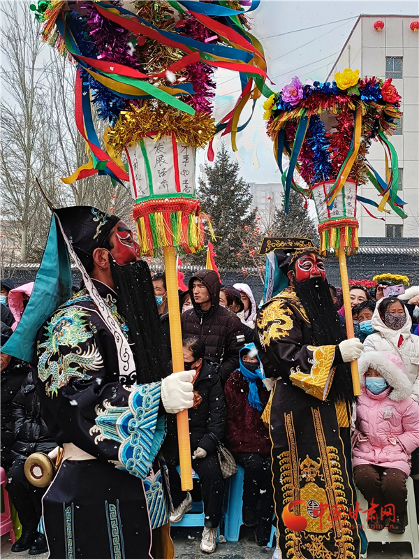 正月十三更是和政秧歌的大日子,來自全縣的優(yōu)秀秧歌隊齊聚縣城,帶來原汁原味的和政秧歌,讓這項省級非遺在活態(tài)傳承中得到有效保護,今年秧歌匯演日又恰逢降雪,為神秘的民俗又增加了一份精彩。