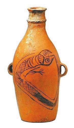 人面鯢紋魚陶瓶