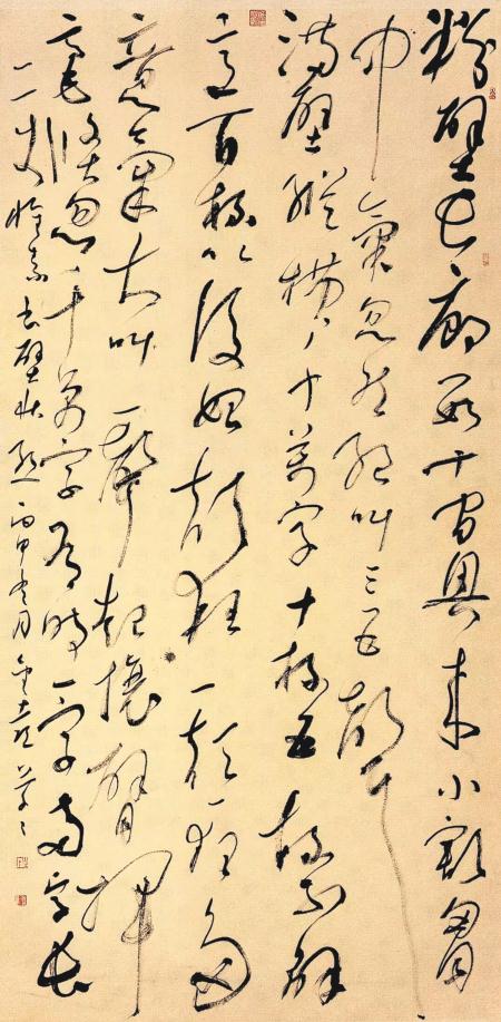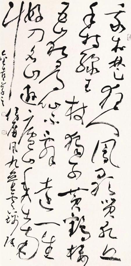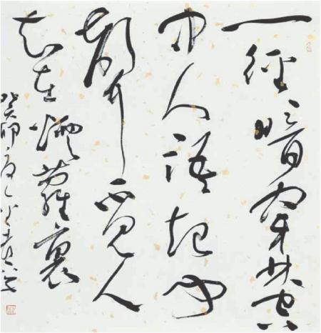 走出去,站在全國的高度,集中進(jìn)行學(xué)習(xí)和交流,對一個立志進(jìn)取的書法家,可以說是一個脫胎換骨的修煉,中國書法發(fā)展的當(dāng)代狀態(tài),成為進(jìn)取的最大參照,風(fēng)格極力貼近時代風(fēng)尚,在此基礎(chǔ)之上加入個人的鮮活語素,在作品中即表現(xiàn)出了時尚,又有自己的構(gòu)想,才有自己的一席之地。侯金喜抓住時代脈搏,積極捕捉在展覽中尚處于不顯眼的元素,不斷加以顯化,使個人的作品在龐大的展出體系中獨具風(fēng)采,難度可想而知,在高手如林的態(tài)勢下,侯金喜知難而上、刻苦磨煉,向經(jīng)典取法,向當(dāng)代名家問路,雙向融合、求新求變,經(jīng)過了這樣一個長的時段的求索,他的草書在全國眾多的草書家中拔地而起,引發(fā)了廣泛的關(guān)注??此牟輹?,變化的度把握在了一個比較妥帖的度上,他不以奇異詭變?yōu)槌缟?,筆畫塑造大體以傳統(tǒng)語言為宗,使柔和與剛健統(tǒng)馭在一起,這種立意基本圍繞中國書法流變的中軸線,可以受到時間的考驗,在一些筆畫中注入的時代信息,經(jīng)過個人的藝術(shù)提煉,具有了新的生氣。在結(jié)構(gòu)選擇上,他同樣進(jìn)行了深思熟慮,反復(fù)篩汰了過度追求時髦的招數(shù),一直強(qiáng)調(diào)深層次的內(nèi)涵,把一個結(jié)體放在歷史的縱向上反復(fù)琢磨,他自己認(rèn)為,形象造型只有沿著時序的推進(jìn),才能有機(jī)地融入歷史,成為藝術(shù)的終極選擇,所以侯金喜的探索是審慎的,邁進(jìn)是疊復(fù)的,我們欣賞他的作品,可以看出他思考的勤謹(jǐn),每一個階段都有不同的表達(dá),欣賞者隨著他的筆觸的流瀉,可以領(lǐng)略到豐富的視覺享受。