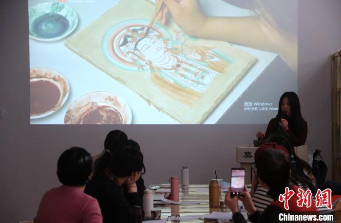 2023年2月,在敦煌研究院莫高學堂,研學導師給學員講授敦煌壁畫臨摹技法。張曉亮 攝