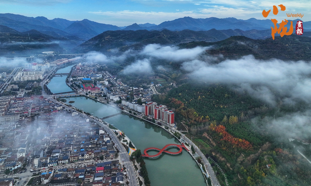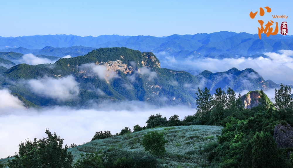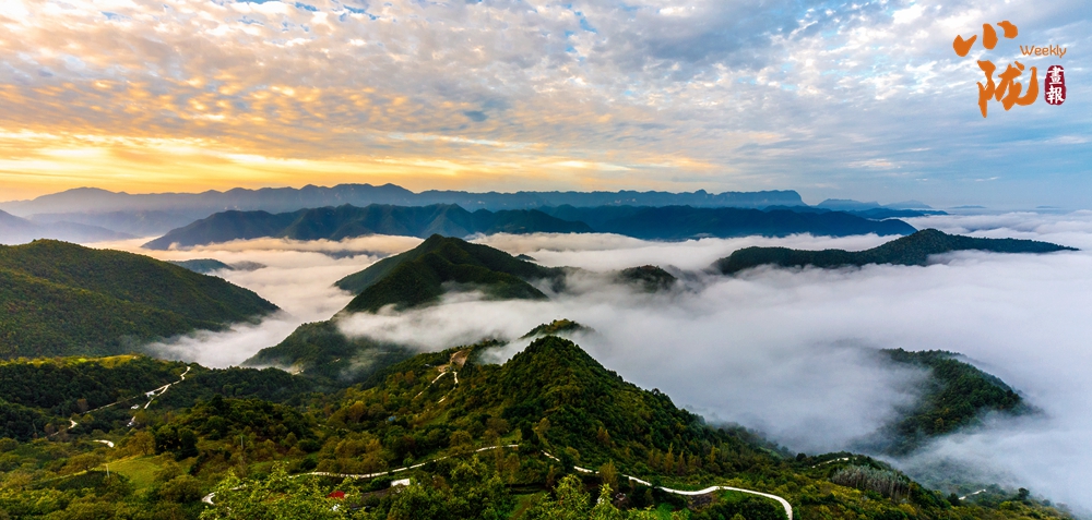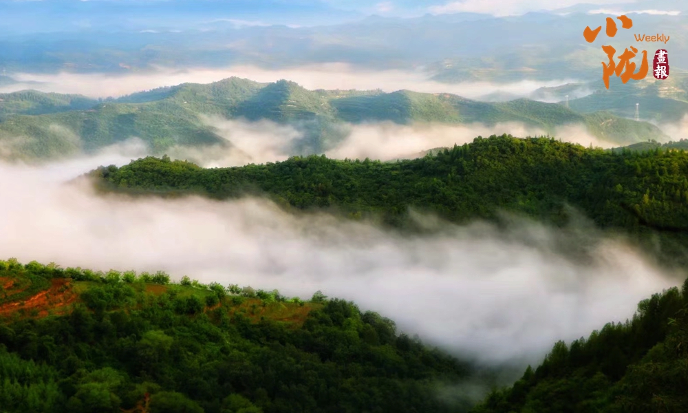 連綿起伏的山巒被綠色包裹,群峰之間薄霧繚繞,天光云影,如畫(huà)仙境。