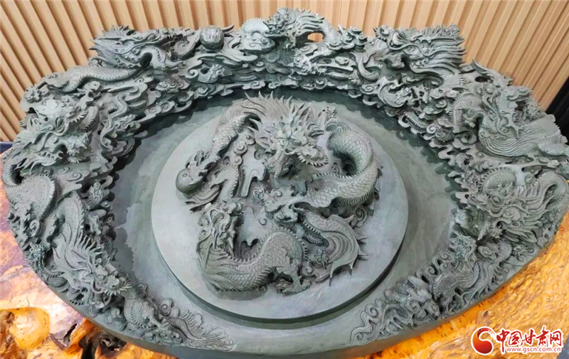 整整40年里,他帶著對洮硯文化的滿腔熱情,胸懷濃濃的家國之情,組織公司上百名精工巧匠,嘔心瀝血、精心制作了“中華復興”硯、“盛世中華龍”硯、“東方醒獅”硯、“錦繡中華”硯等各種象征偉大祖國繁榮昌盛、碩果累累的巨硯,分別在人民大會堂及全國多所重點院校落座展出。
