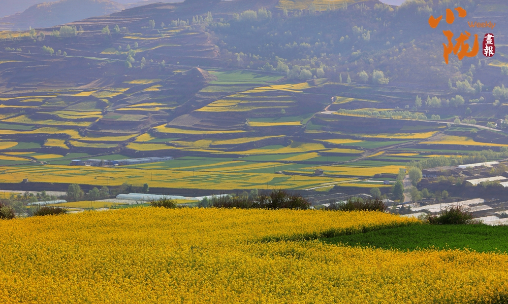 在武山縣龍臺鎮(zhèn)、灘歌鎮(zhèn)、楊河鎮(zhèn)等高山地區(qū),萬畝優(yōu)質(zhì)高山油菜已花開成海,梯田式的油菜花與遠山近水、村落農(nóng)家交相輝映,與綠油油的麥田相映成趣,形成了獨具風(fēng)格的山水田園風(fēng)光,為大地呈現(xiàn)出最美的春色。
