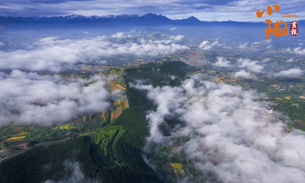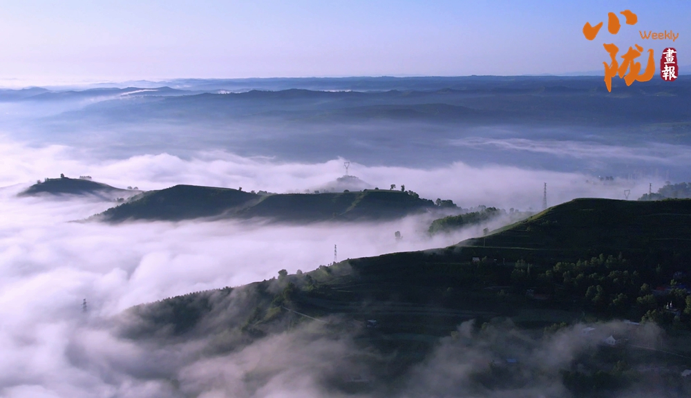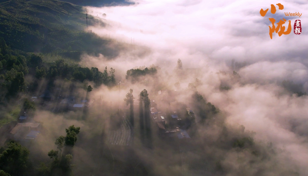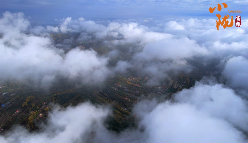 從高處俯瞰,白色的云海在大地上空翻騰涌動(dòng),時(shí)而聚攏,時(shí)而消散,田園、村莊在云霧中時(shí)隱時(shí)現(xiàn),如夢(mèng)如幻。