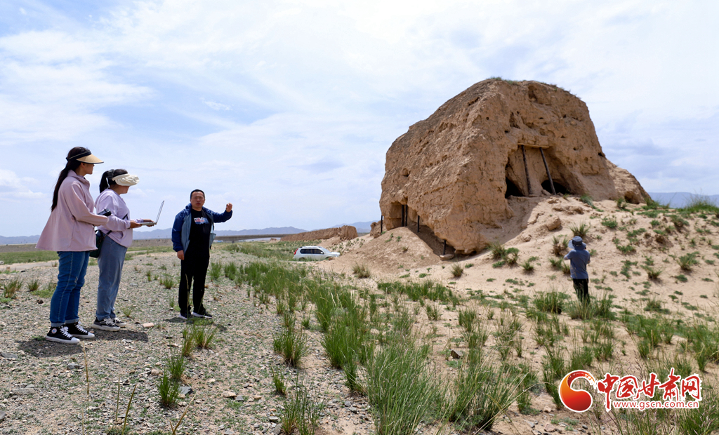 6月27日,甘肅省張掖市山丹縣漢明長(zhǎng)城保護(hù)研究中心工作人員正在峽口古城段進(jìn)行現(xiàn)場(chǎng)勘察和數(shù)據(jù)采集。