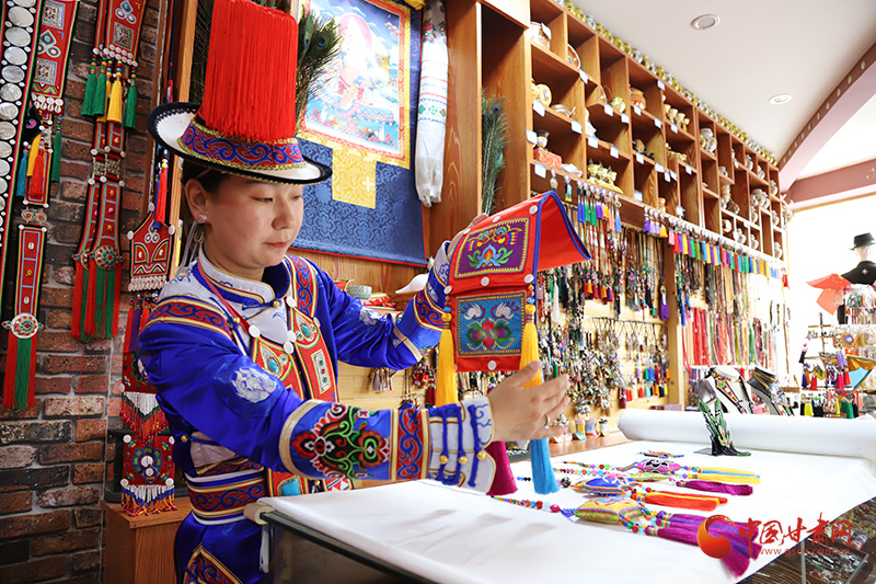 在富達民族服飾工藝品加工坊里,大河鄉(xiāng)紅灣村裕固族姑娘顧婷,理線、穿針、落針……各種配飾在她指尖翻轉騰挪,不一會兒,就做成了一幅幅精美的荷包、項鏈、耳飾、腰帶……除此之外,她還會為顧客搭配不同場合需要的服飾、民族工藝品、地方特色旅游產品等。