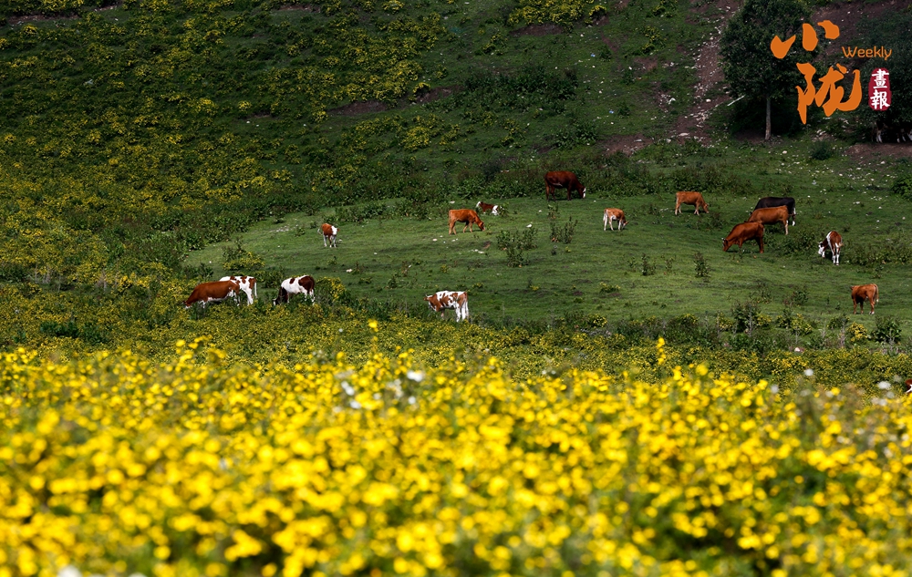 每年七月,廣闊無(wú)垠的黃草坪盡情釋放生命的活力,換上了金黃色外衣,清新而明凈,鋪滿一座又一座山坡。
