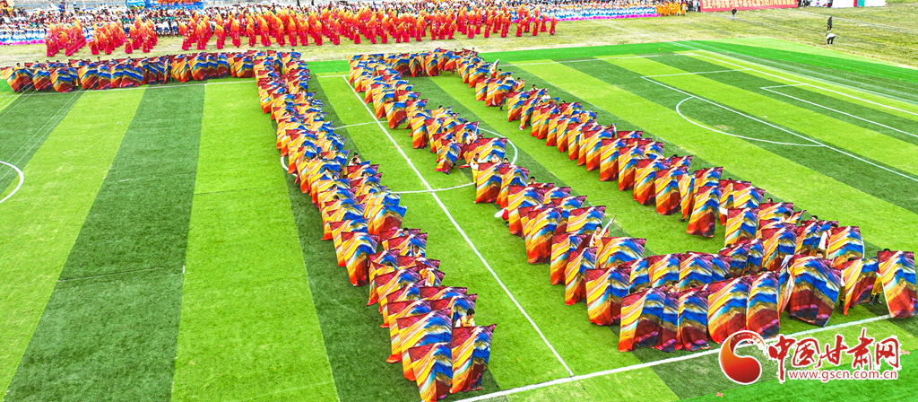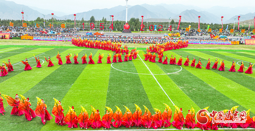 8月13日,甘肅省張掖市肅南裕固族自治縣萬名群眾身著節(jié)日的盛裝,齊聚在索朗格賽馬場(chǎng)上,展開主題為“感恩奮進(jìn)七十載·同心共富新時(shí)代”的歌舞表演,感謝偉大的中國(guó)共產(chǎn)黨,謳歌美好的新生活。