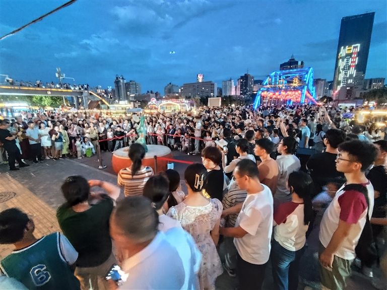 夜游黃河項(xiàng)目則圍繞黃金水道,結(jié)合蘭州南北狹長(zhǎng)、“橋梁之都”的特點(diǎn),串聯(lián)黃河母親、中山橋、白塔山,形成“夜游黃河”3條精品航線,開通水上巴士環(huán)線,并依托碼頭創(chuàng)新開展露營(yíng)、草地婚禮等活動(dòng),全方位展示了黃河蘭州段魅力。同時(shí),黃河之濱音樂展演、黃河市集等豐富精彩的活動(dòng)也已經(jīng)成為“夜游黃河”的常態(tài)化演出和節(jié)目。