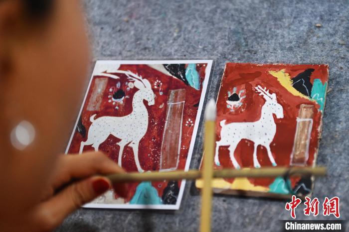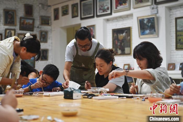 8月20日,甘肅敦煌莫高里工匠村內(nèi),學(xué)員體驗(yàn)敦煌文化研學(xué)課程。工匠村開設(shè)了泥板畫、彩繪、雕塑制作、剪紙、農(nóng)耕體驗(yàn)等課程,現(xiàn)已發(fā)展成為一個集敦煌文化講堂、壁畫書法研習(xí)、美術(shù)設(shè)計(jì)、彩塑制作教學(xué)、篆刻藝術(shù)、傳統(tǒng)釀酒體驗(yàn)、農(nóng)業(yè)產(chǎn)業(yè)發(fā)展等于一體的多功能實(shí)訓(xùn)基地。中新社記者 李亞龍 攝