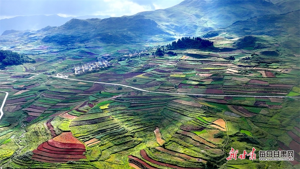 高山花海,紅土梯田,秋日的隴南武都云上馬營(yíng)猶如一頂七彩的花環(huán),圍繞在高山之巔,清新濕潤(rùn)的空氣中,飄著淡淡的花香和藥香,光影交織在松樹林和村莊之間,一陣風(fēng)吹過(guò),仿佛整片大地都與陽(yáng)光在輕柔地呼吸。