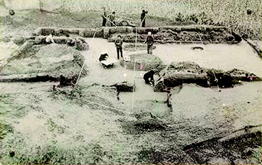 秦安大地灣遺址是1958年發(fā)現(xiàn)的,當(dāng)時(shí)正值全國(guó)文物大普查,隨即被列為省級(jí)文物保護(hù)單位。1978年開始發(fā)掘,總面積110萬平方米,現(xiàn)揭露面積13700平方米,出土房址238座、灰坑357個(gè),墓葬79座、窯38座、灶臺(tái)106座,各種骨、石、蚌、陶器、裝飾器和生活器物共計(jì)8034件。特別是房屋建筑遺址,不僅規(guī)模宏偉,而且形制復(fù)雜。在發(fā)掘中就被公布為全國(guó)重點(diǎn)文物保護(hù)單位。